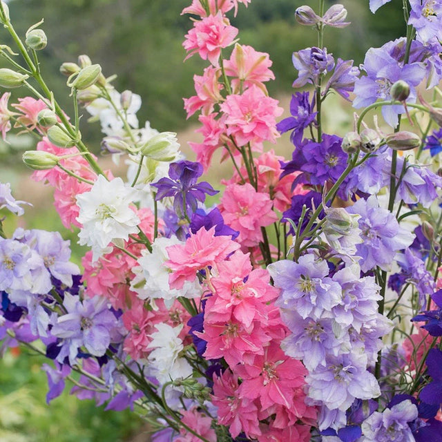 Description: Tall, bright, and elegant! These impressive 36 to 48” tall stalks come in blue, violet, red, lavender, salmon, pink, rose, and white. Bees and butterflies are all about these! A great cut flower and an excellent choice for any arrangement.