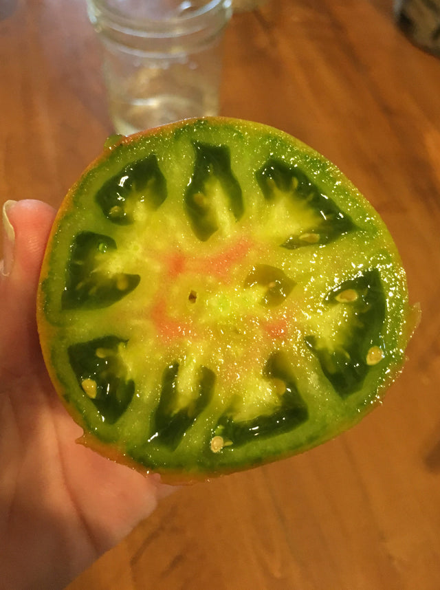 Description: This rare, Russian bi-colored tomato is as beautiful as it is delicious! Beefsteak type tomato ripens to a green and copper color with green and fuchsia rose flesh. Fantastic flavor that does seem to have a just a hint of its name.